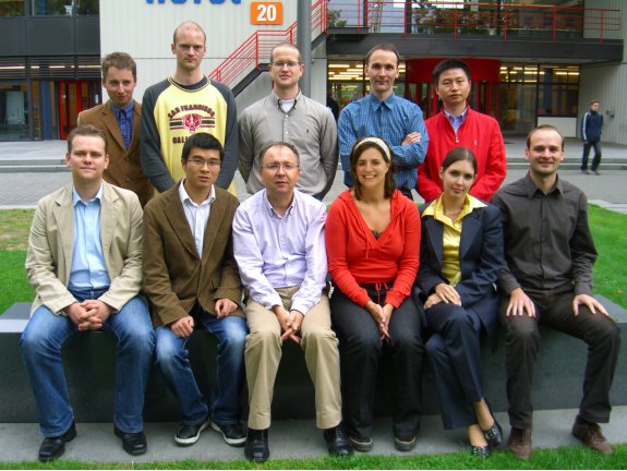 Photo: (former) members Sustainable Building research group. Standing (from left to right): Ariën de Korte, Götz Hüsken, Martin Hunger, Ronald van Eijk and Wei Chen. Sitting (from left to right): Bram Entrop, Qingliang Yu, Jos Brouwers, Milagros Ballari, Miruna Florea-Marinescu and Przemek Spiesz (Enschede, 2008).